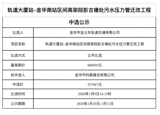 金華-義烏-東陽市域軌道交通工程軌道、公交乘車碼二碼融合AFC系統集成項目中標候選人公示