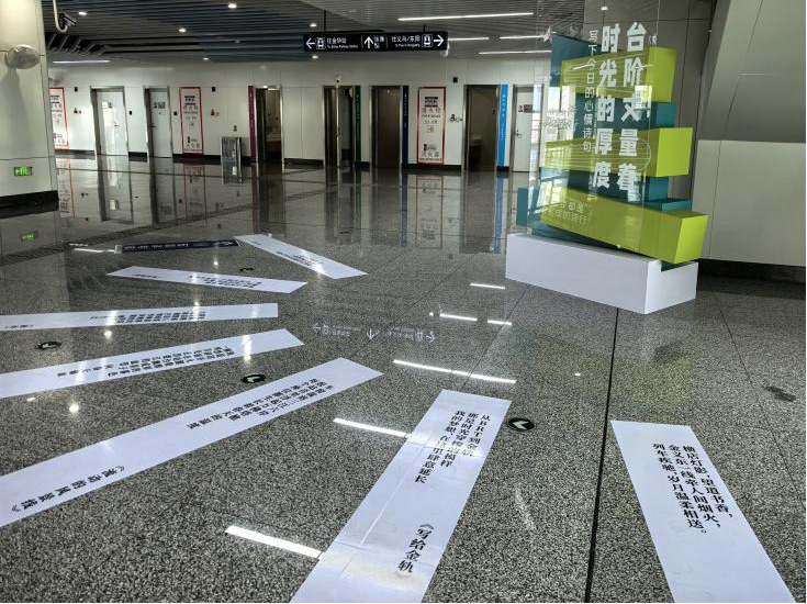 “八詠樓倒影劃過車窗/鐵龍飲雙龍洞髓/城市的脈絡(luò)在眼前清晰呈現(xiàn)”——這面由乘客共同創(chuàng)作的拼貼詩墻,寫滿了金華人的城市記憶與浪漫想象,承載了古婺文脈與現(xiàn)代都市的交響,以詩句為筆,共繪金華的山水詩行。