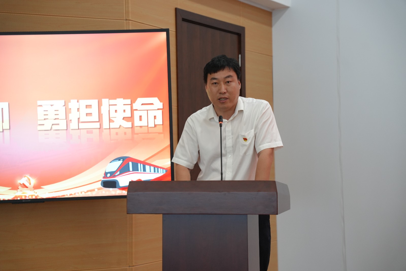 青年宣講員蔣澤以《黨建引領(lǐng)·金軌閃耀》為題,帶領(lǐng)大家回顧黨員干部用服務(wù)詮釋初心、用奉獻(xiàn)書(shū)寫(xiě)擔(dān)當(dāng)?shù)?/span>3個(gè)暖心小故事。